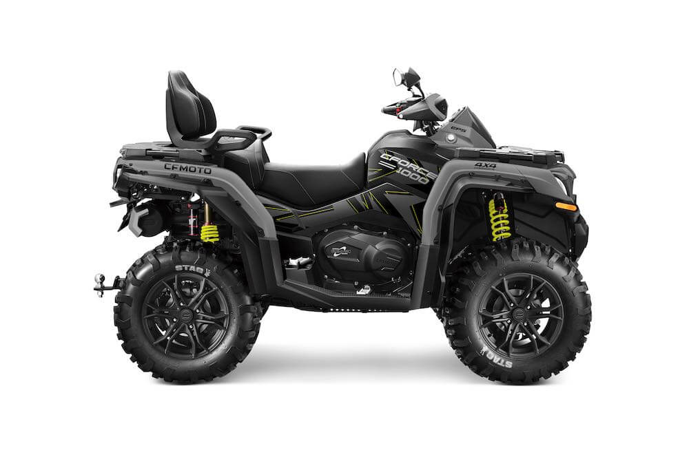 The one you have been waiting for! This is the brand new CFMOTO CFORCE 1000, our most powerful, best spec quad to date. The CFORCE 1000 has all the features of the CFORCE 850xc, but with our 80hp 963cc BOSCH Fuel injected engine. Featuring the new rear trailing arm suspension means a more comfortable ride and unbeatable handling with and better grip with more tyre in contact with the ground during the 7.9″ of suspension travel. Adjustable gas piggyback shocks giving 11″ of ground clearance.